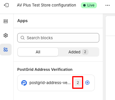 Once the app is successfully added, you will see the checkmark is replaced with number 2. This confirms the app is active and your store checkout is ready to use PostGrid Address Verification.