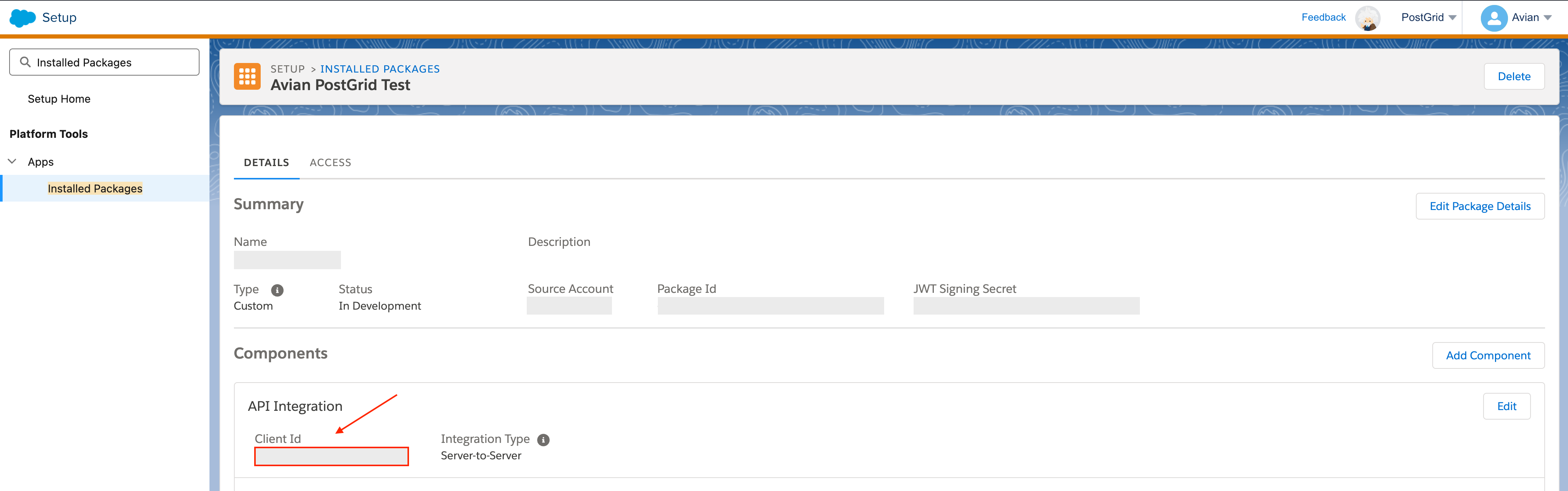 To get the Client_Id go to Setup > Search for "Installed Packages" > Click on Installed Packages > Navigate to the PostGrid package you installed earlier and copy the Client ID